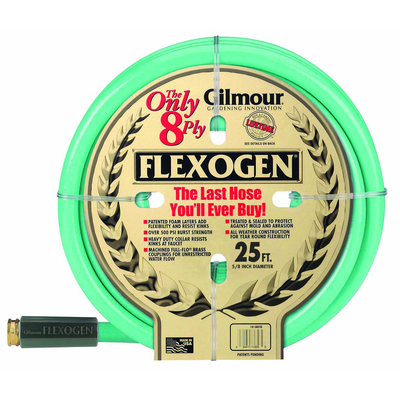Flow Guard Plus protective collar on 5/8" and 1/2" hoses resists kinks at faucet