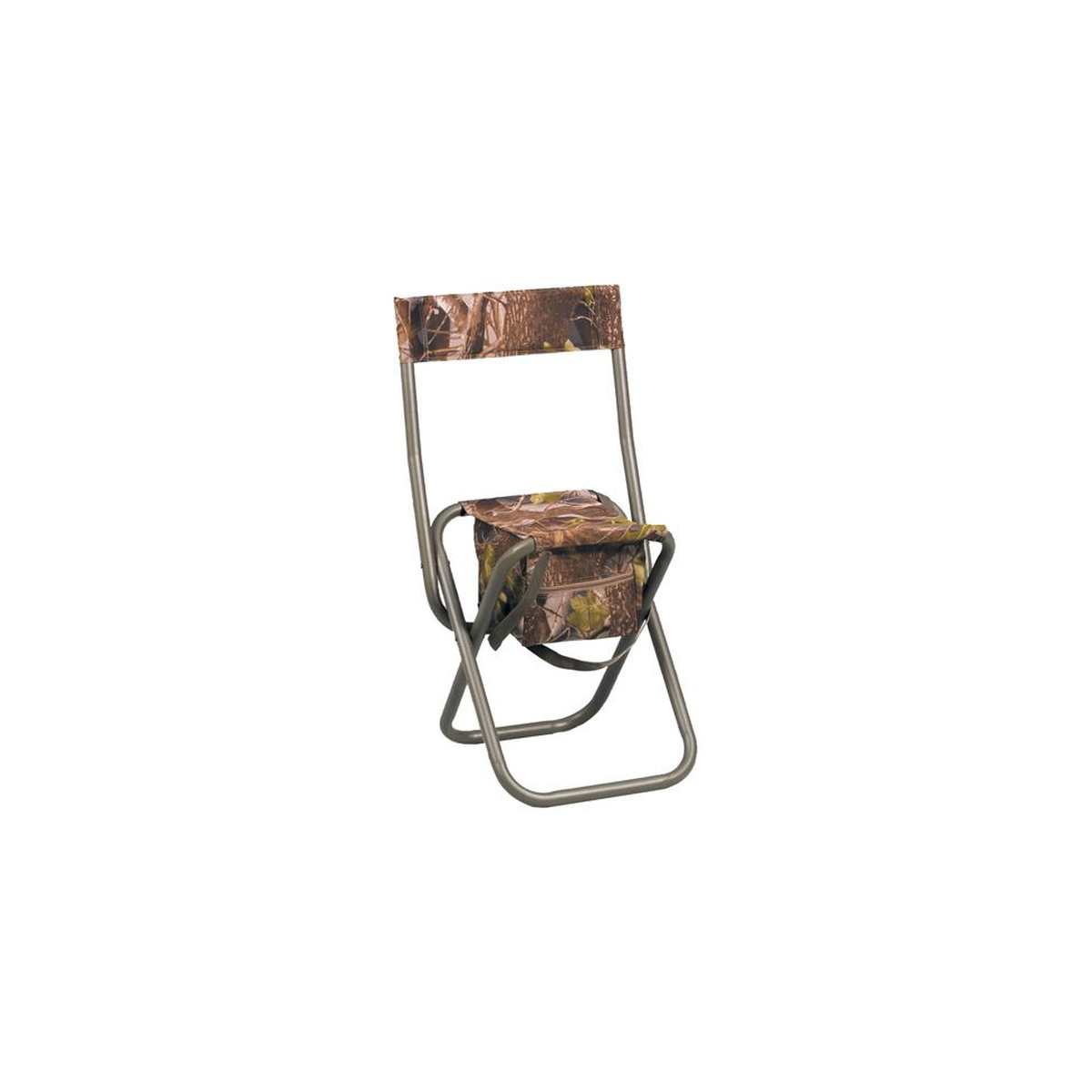 This Camo DoveChair works great for sitting in a blind, fishing or any other outdoor activity. It features a Realtree Xtra Green camo polyester seat and seat back with a storage pouch underneath. The Camo DoveChair is constructed of durable steel tubes, yet is lightweight, collapsible and easily stored. It has a carry strap for transport. 32.5 in. tall, seat height-19in., seat measures 10in x 11.5in. Weighs less than 5 pounds. Rated for 225-pound weight limit