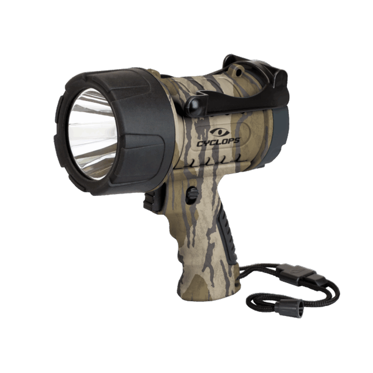 In moments of truth, the 600-lumens of our Mossy Oak Bottomlands camo-dipped Hunt Spotlight's Cree XP-G4 6-watt LED go to work, illuminating everything around you and making blood trails easy to follow for as long as 3.5 hours at full power, 6.5 hours on low (300 lumens), or 9 hours when operated in SOS mode. An integrated PC reflector ensures beam distribution and intensity from 350 meters (low power) out to as many as 500 meters (high power)