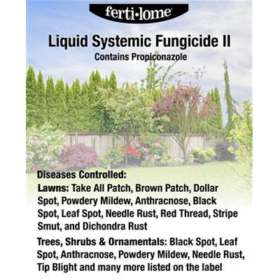 Trees, Shrubs & Ornamentals: Black Spot, Leaf Spot, Anthracnose, Powdery Mildew, Needle Rust, Tip Blight and many more listed on the label.