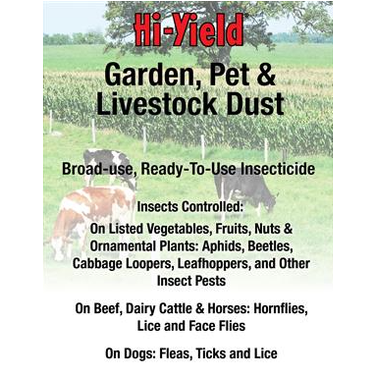 Controls Hornflies, Lice and Face Flies on beef and dairy Cattle and Horses.