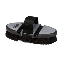 This innovative body brush flexes at two points, allowing the brush to fit the contours of the horse's body. Made with soft horsehair bristles, it is the perfect finishing brush to remove fine dirt and dust. Complete with adjustable nylon hand strap to keep brush firmly and comfortably in your hand.