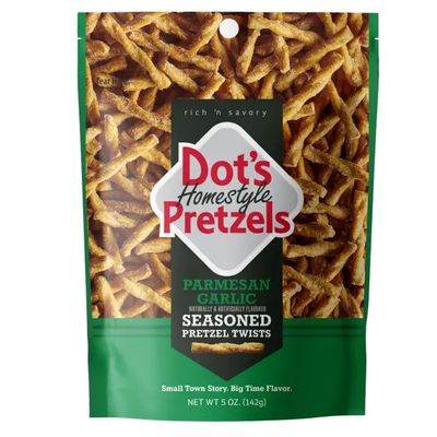 Get ready for the snack adventure of your life! Dot's Parmesan Garlic Seasoned Pretzel Twists are braided and dusted with Dot's Parmesan Garlic seasoning blend. Each pretzel twist envelopes your taste buds in a delightful swirl of buttery, sweet, and cheesy flavors.