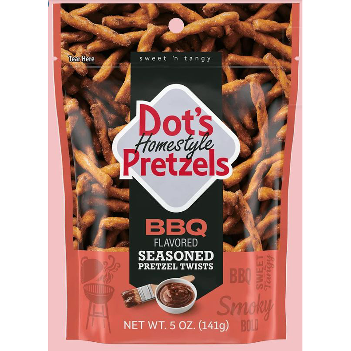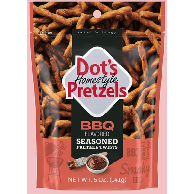 Savor the bold, smoky sweetness of DOT'S Homestyle Pretzel BBQ Flavored Seasoned Pretzel Twists. Each crunchy twist is coated in a perfectly balanced BBQ seasoning, delivering a zesty, savory and salty kick in every bite. Perfect for parties, road trips or anytime snacking!