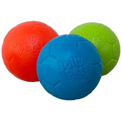 This dog proof soccer ball lets you keep your eyes on the real goal - having fun with your pup! Made of JollyFlex material, this ball can be punctured and will not deflate. Even if your dog puts a hole in it, this toy will still keep its shape.