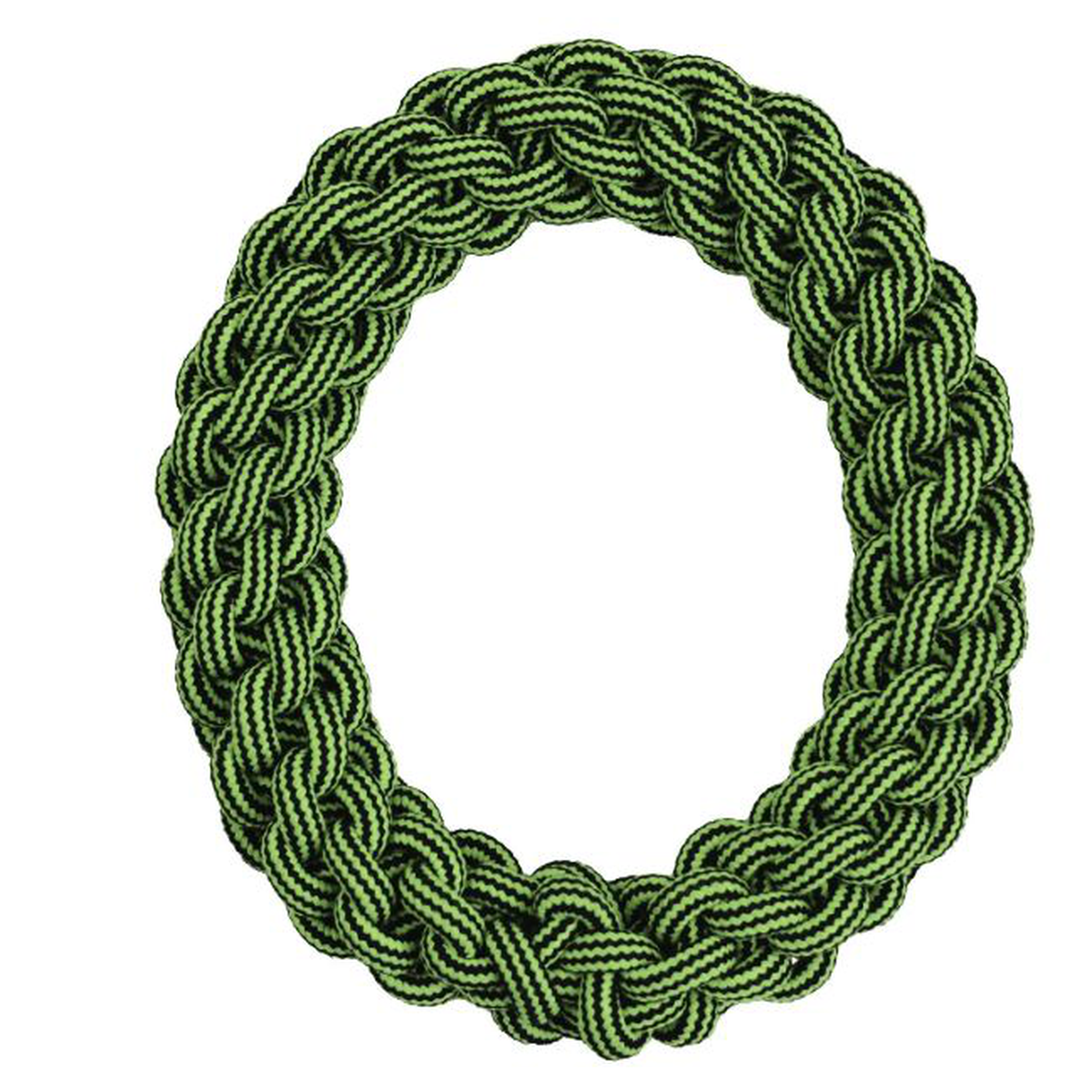 The O is the ultimate playtime essential for your furry friend! Crafted from durable, tightly woven poly blend rope, this toy is designed to withstand hours of tugging, and fetching. Its circular shape makes it easy for dogs of all sizes to grab and carry, while the texture helps to clean teeth and massage gums during play. Perfect for interactive games and solo entertainment, this rope ring is sure to become your dog's new favorite toy. Safe, fun, and built to last-it's the perfect addition to your pet's toy collection!