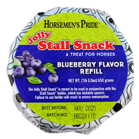 A tasty way for your horse to be entertained, while helping to alleviate stall boredom. Refill fits Horsemen's Pride Stall Snack Blueberry shaped holder and Stall Snack Combo.