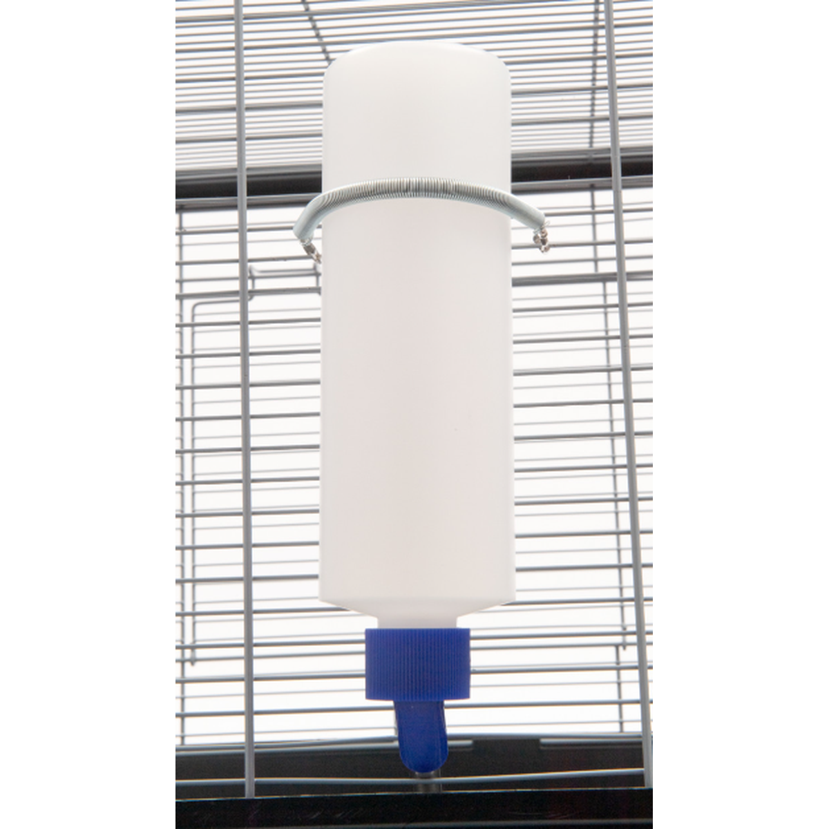 By Lixit Water bottle kit pairs an empty shampoo or beverage bottle with a stainless steel double ball-point tube to make a water bottle for rabbits ferrets dogs cats and other small animals. The no-drip cap design features an extra-thick non-toxic gasket. An adjustable heavy-duty spring is included to hold the bottle in place