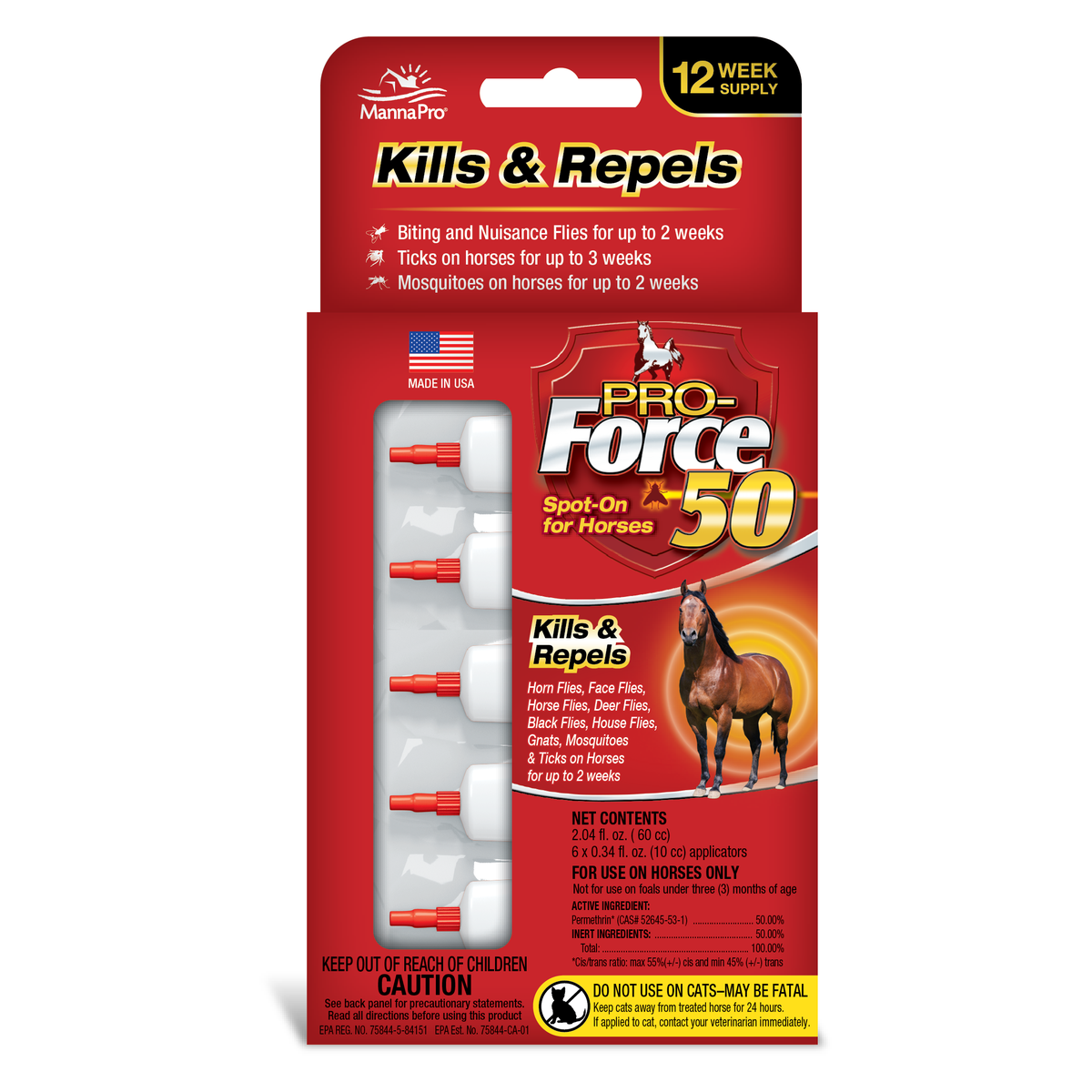 Kills + repels biting & nuisance flies, ticks and mosquitos