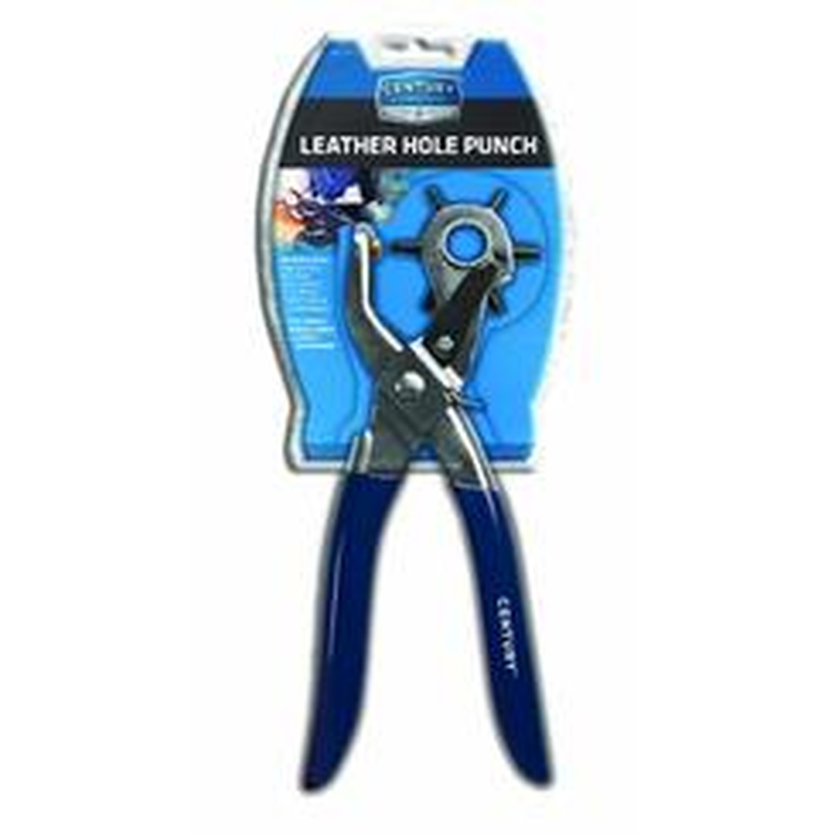 Six hole sizes rotate for clean round holes in leather and other soft material.
