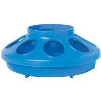 Feeder base combines with the Little Giant 1-Quart Screw-On Feeder/Waterer Jar (Item No. 690, sold separately) to make a gravity feeder for baby chicks and small birds. Features eight openings, with ribs to minimize feed overflow and spillage. 6.375 inch diameter by 2.5 inch high. Made of heavy-duty polypropylene. Available in several colors to mix and match.