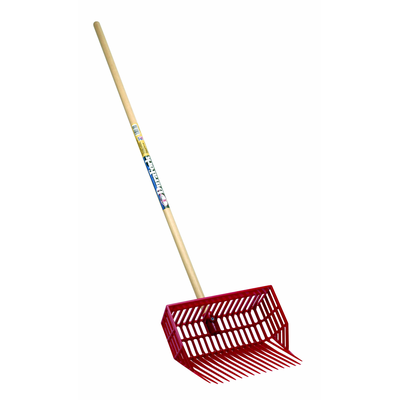 The classic Little Giant DuraFork just got better! Basket design helps prevent manure from slipping off the fork. Specially designed tines are uniquely angled to provide easy manure pickup with less spilling. Designed for long-lasting use from extra-strong 100 percent polycarbonate to provide super strength and flexibility. Nylon locknut secures the head to the 52 inch 1.125 inch-diameter hardwood handle. Red fork head is 13 inch long by 16 inch wide.