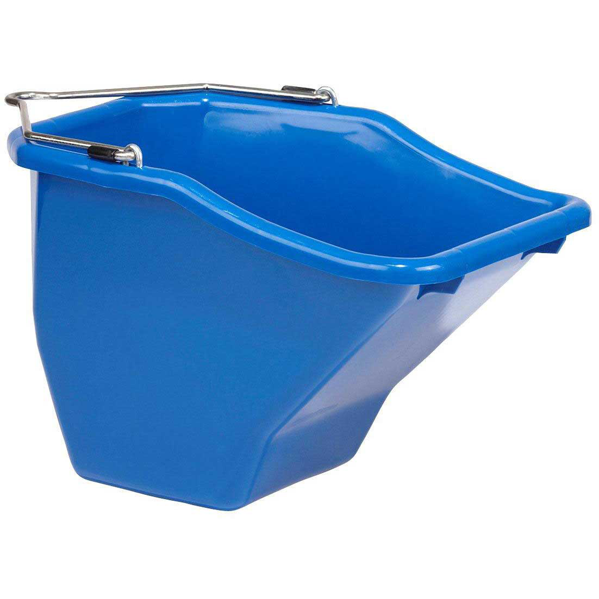 • Ergonomic bucket excellent for horses, cattle, and other livestock. Angular design better accommodates animal's facial structure, allowing a more natural eating manner. Tapered sides funnel feed toward back of bucket, which makes feed and grain more accessible and reduces animal behavioral problems.