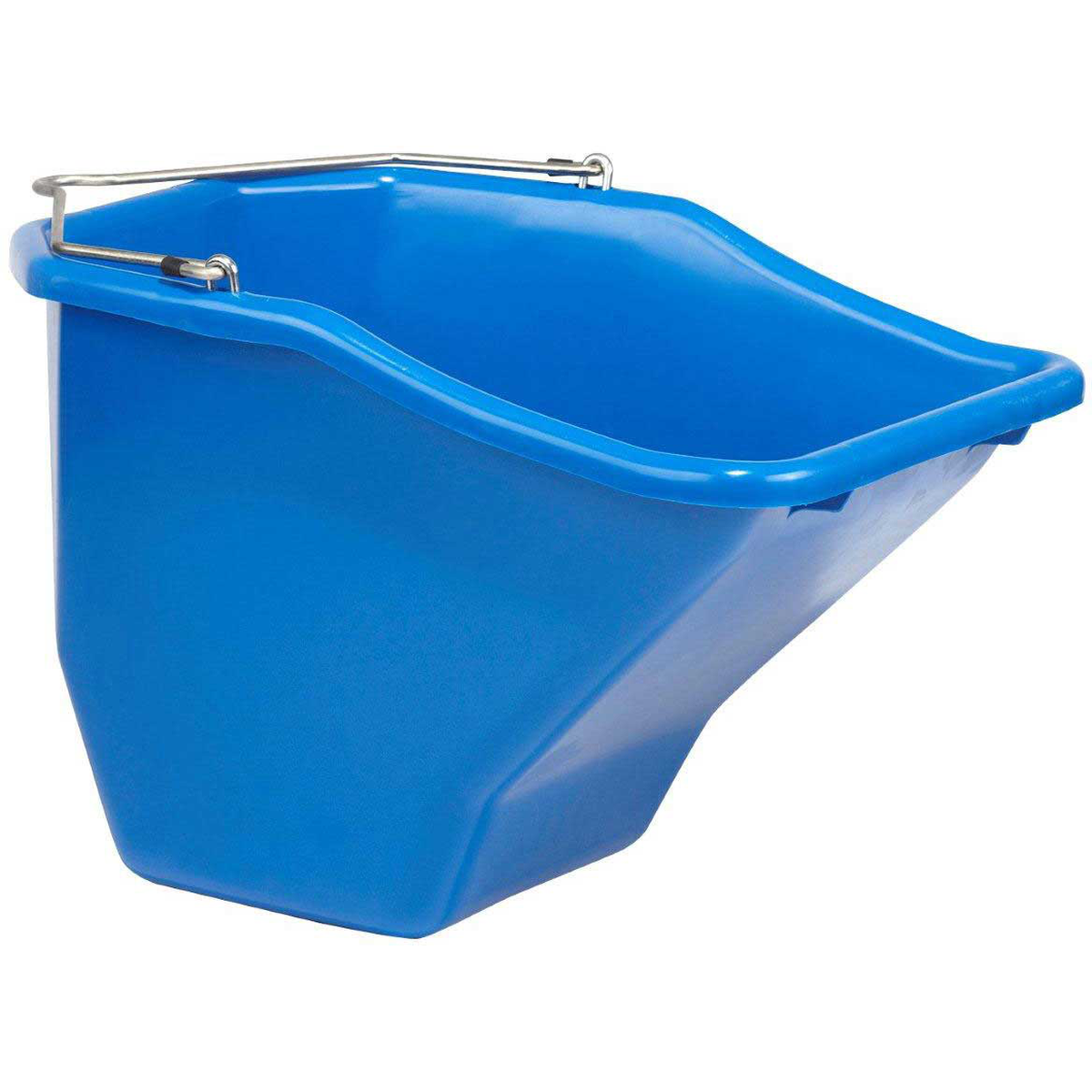 • Ergonomic bucket excellent for horses, cattle, and other livestock. Angular design better accommodates animal's facial structure, allowing a more natural eating manner. Tapered sides funnel feed toward back of bucket, which makes feed and grain more accessible and reduces animal behavioral problems.