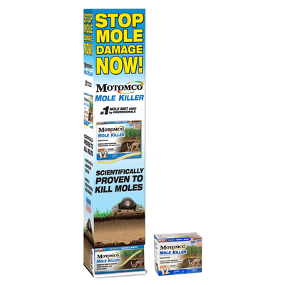Motomco Mole Killer is available in worm or grub shaped baits and is scientifically proven to kill moles in lawns, yards and gardens. It was designed to mimic a mole's natural food source: earthworms and grubs. Other mole baits have been developed on the premise that moles are similar to rats and mice, when in reality a mole's diet is entirely different, making most pelleted bait ineffective. Developed using extensive lab and field research, Motomco Mole Killer succeeds where other grain baits, repellants and home remedies have failed. Moles can consume a lethal dose of Motomco Mole Killer in a single feeding and die in as little as two days.