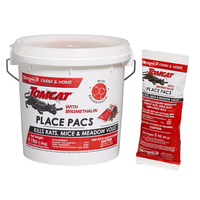 Tomcat with Bromethalin Place Pacs contain the premium active ingredient Bromethalin, excellent for proven control of high rodent populations and severe infestations. Bromethalin is an acute, non-anticoagulant active that will begin to kill rats & mice in 2 or more days, faster than anticoagulant baits. Due to a quick knockdown when compared to anticoagulants, more rodents can be controlled with less bait. Pellets are packaged in individual, pre-measured 3 oz Place Pacs, which protect the bait and make it easier to get into tight spaces or hard to reach locations.