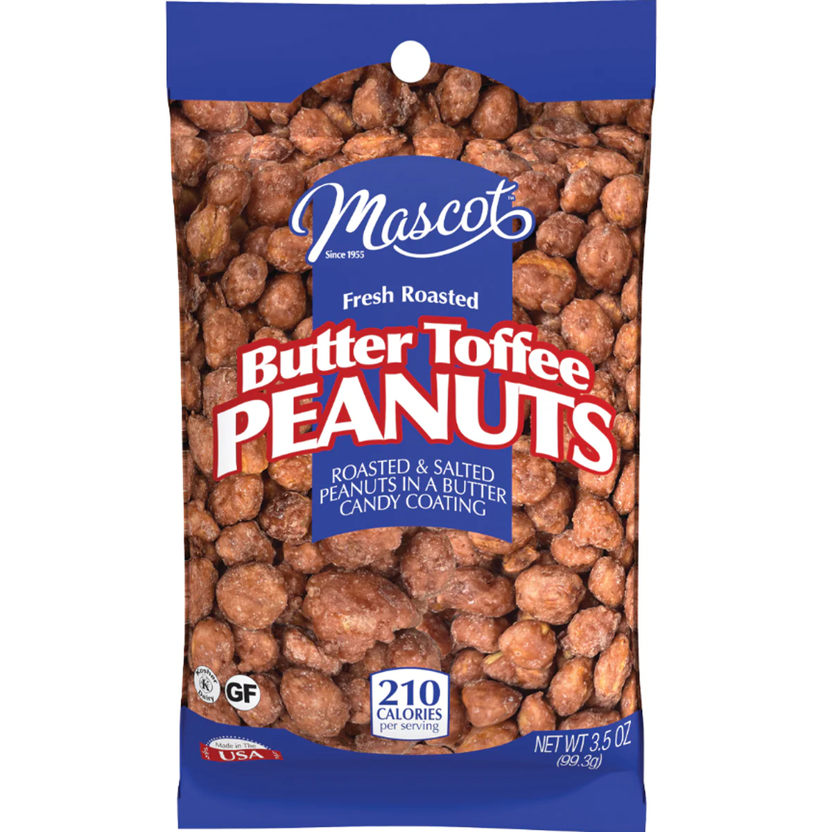 Savor the irresistible flavor of our Butter Toffee Peanuts, a delightful treat from Mascot Pecan. These peanuts are coated with a rich, buttery toffee for a sweet and salty snack that's perfect for any time of the day. These are shelf-stable and available year-round, ensuring you can enjoy this delectable snack anytime you desire. Made with care and quality in mind, these Butter Toffee Peanuts are a true testament to our commitment to providing thoughtful, delicious snacks from our family to yours. Enjoy them every day or share them with friends and family for a special occasion.