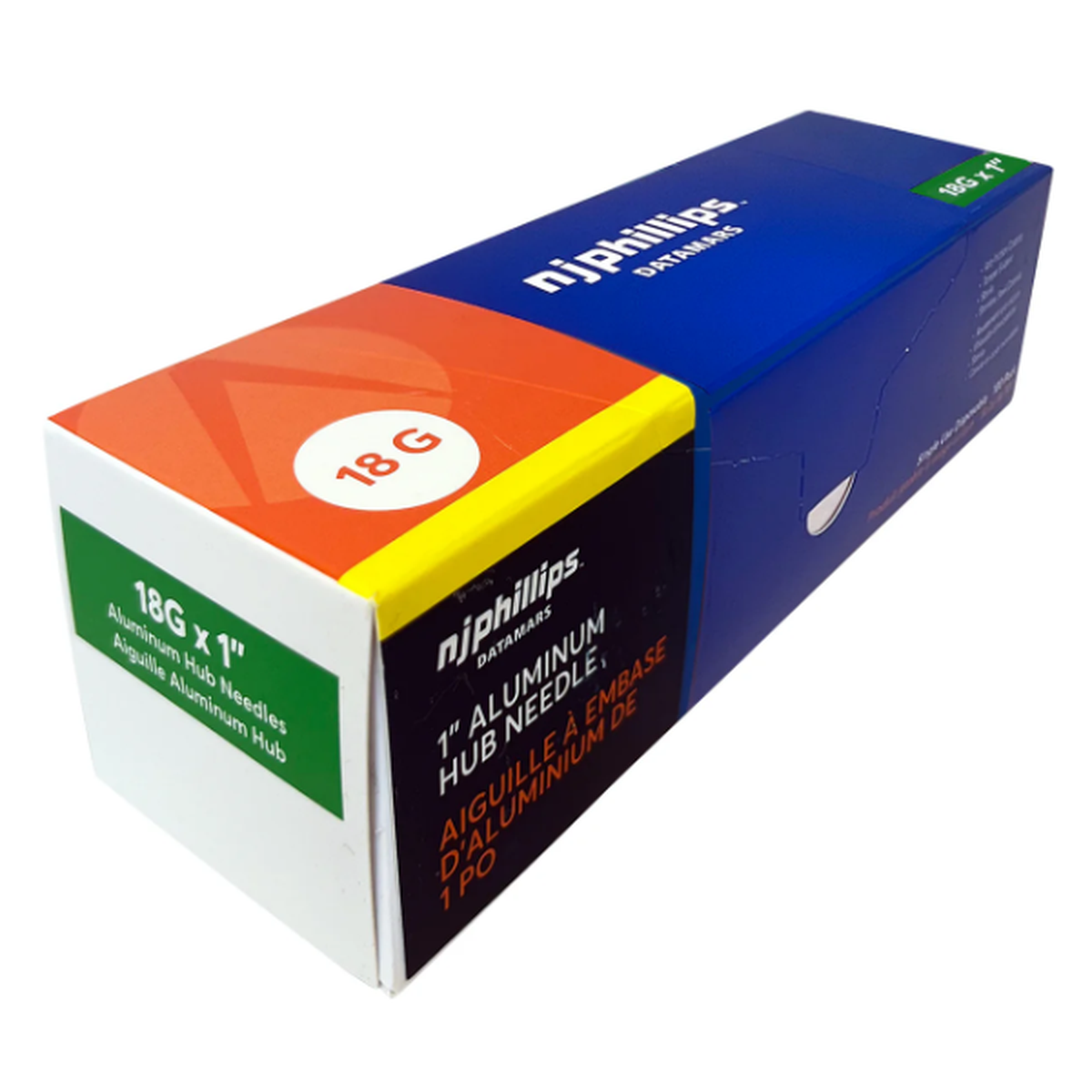 N.J. Phillips Aluminum Hub Needles 18G x 1" (100/box)