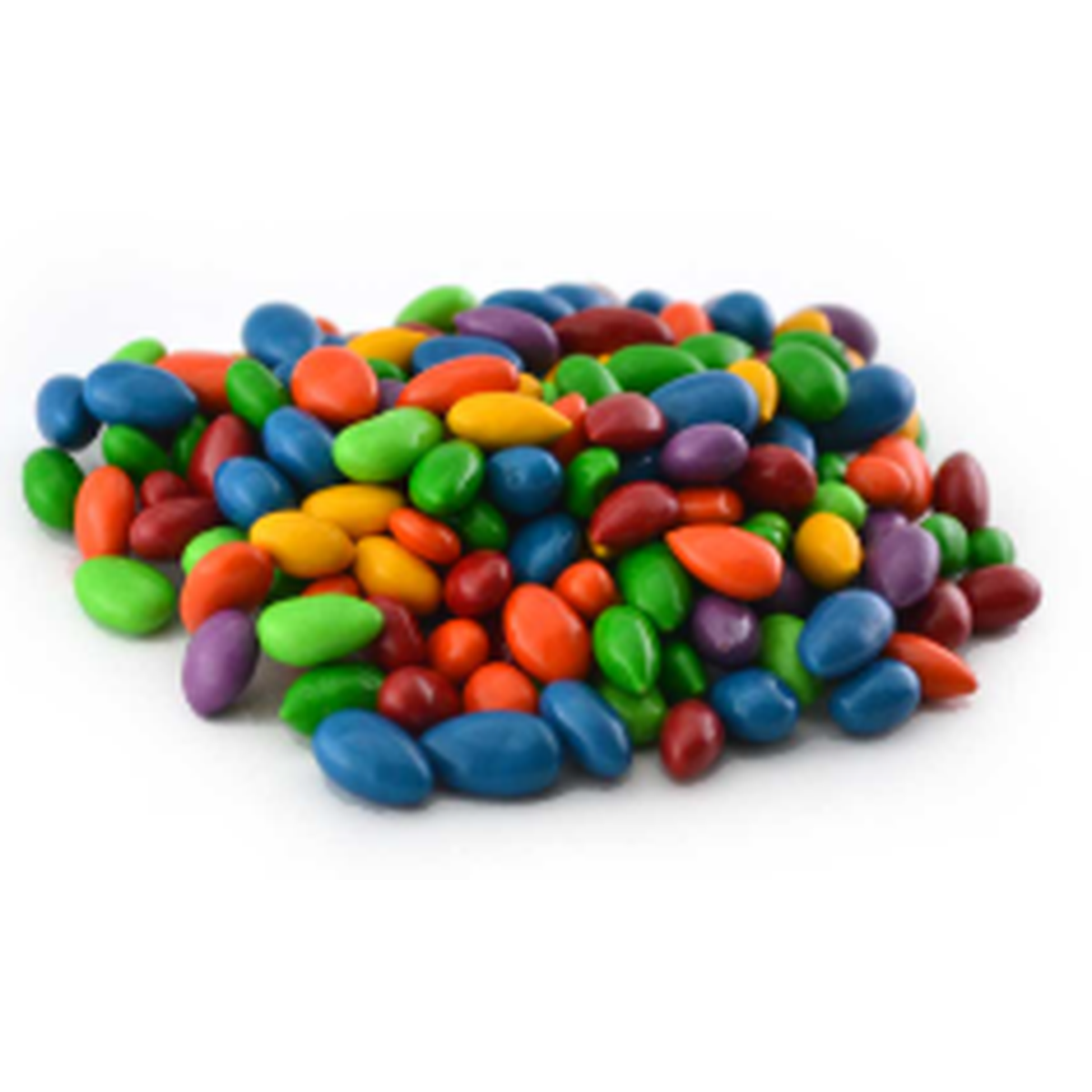Individual roasted sunflower seeds covered in milk chocolate and then topped off with a colorful candy coating. Let your imagination run wild with uses for these sweet tidbits. Careful, you can't eat just one!