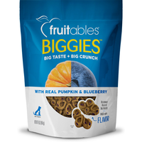 Go big or go home - Fruitables is certainly not going home with these Biggies Pumpkin & Blueberry Dog Treats! These extra crispy treats pack big, bold taste with healthy ingredients, including real fruits and veggies to really get your canine companion's tail wagging. This paw-ticular flavor features pumpkin and blueberry, a flavor combination that's hard for any hound to resist