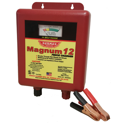 12-volt magnum low impedance battery operated 30-mile range electric fence charger