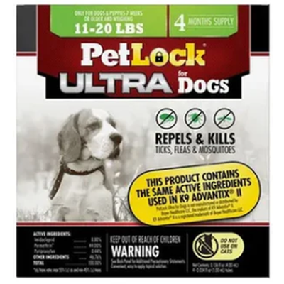 PetLock Ultra is specifically formulated for use on dogs and puppies over the age of 7 weeks. This medication is applied topically, once per month, and effectively interrupts the flea lifecycle. Each pack comes with 4 applications.
