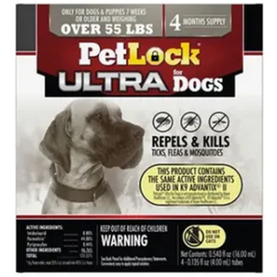 PetLock Ultra is specifically formulated for use on dogs and puppies over the age of 7 weeks. This medication is applied topically, once per month, and effectively interrupts the flea lifecycle. Each pack comes with 4 applications.