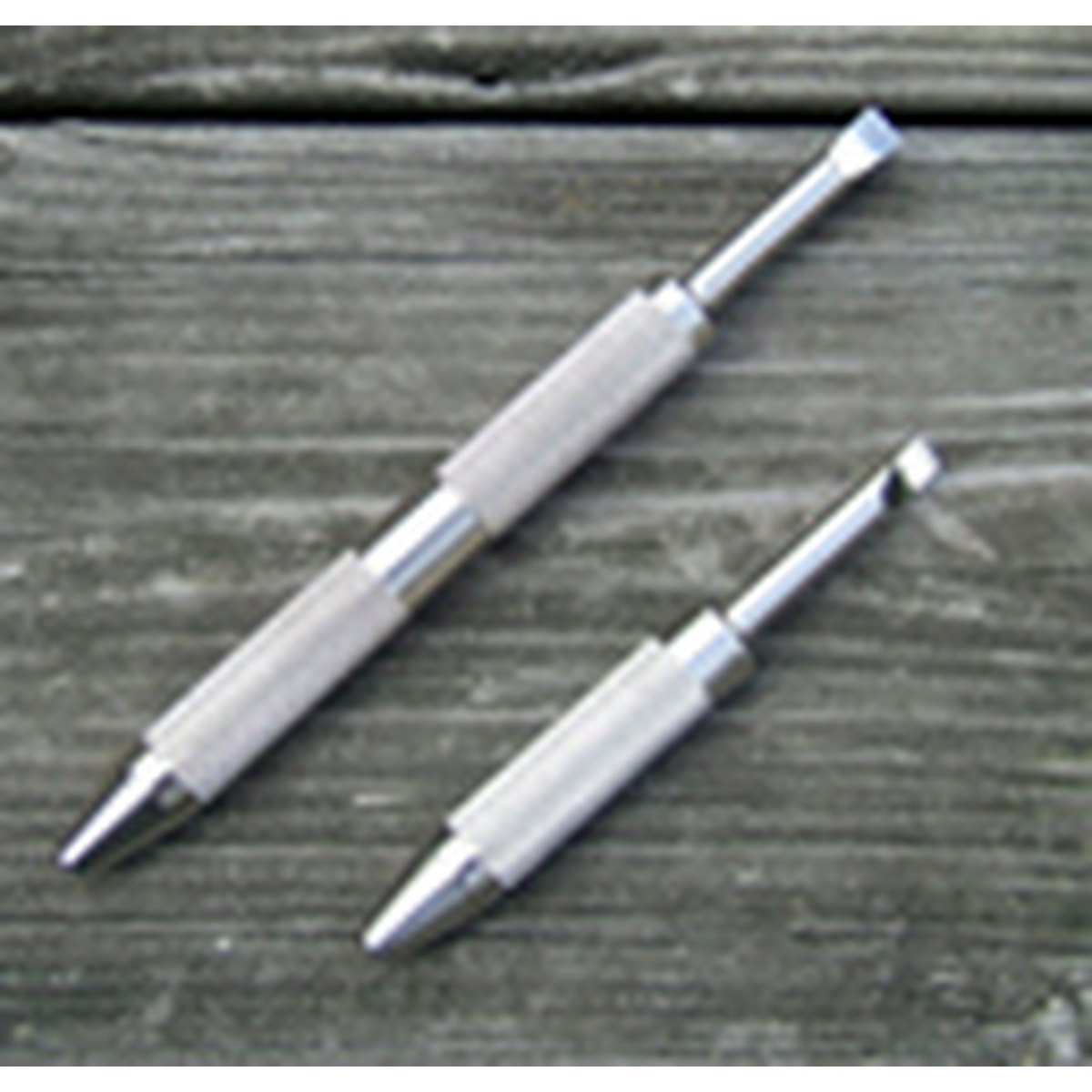Two-in-one tool with a flathead screwdriver tip on one end.