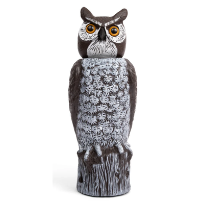 The Rotating-Head Owl from Dalen is a patented Natural Enemy Scarecrow with a realistic head that bobs and turns in gentle breezes, helping to repel birds and pests. Ideal for dock and garden protection, the Rotating-Head Owl is hand-painted and stands 16" tall, providing an imposing presence