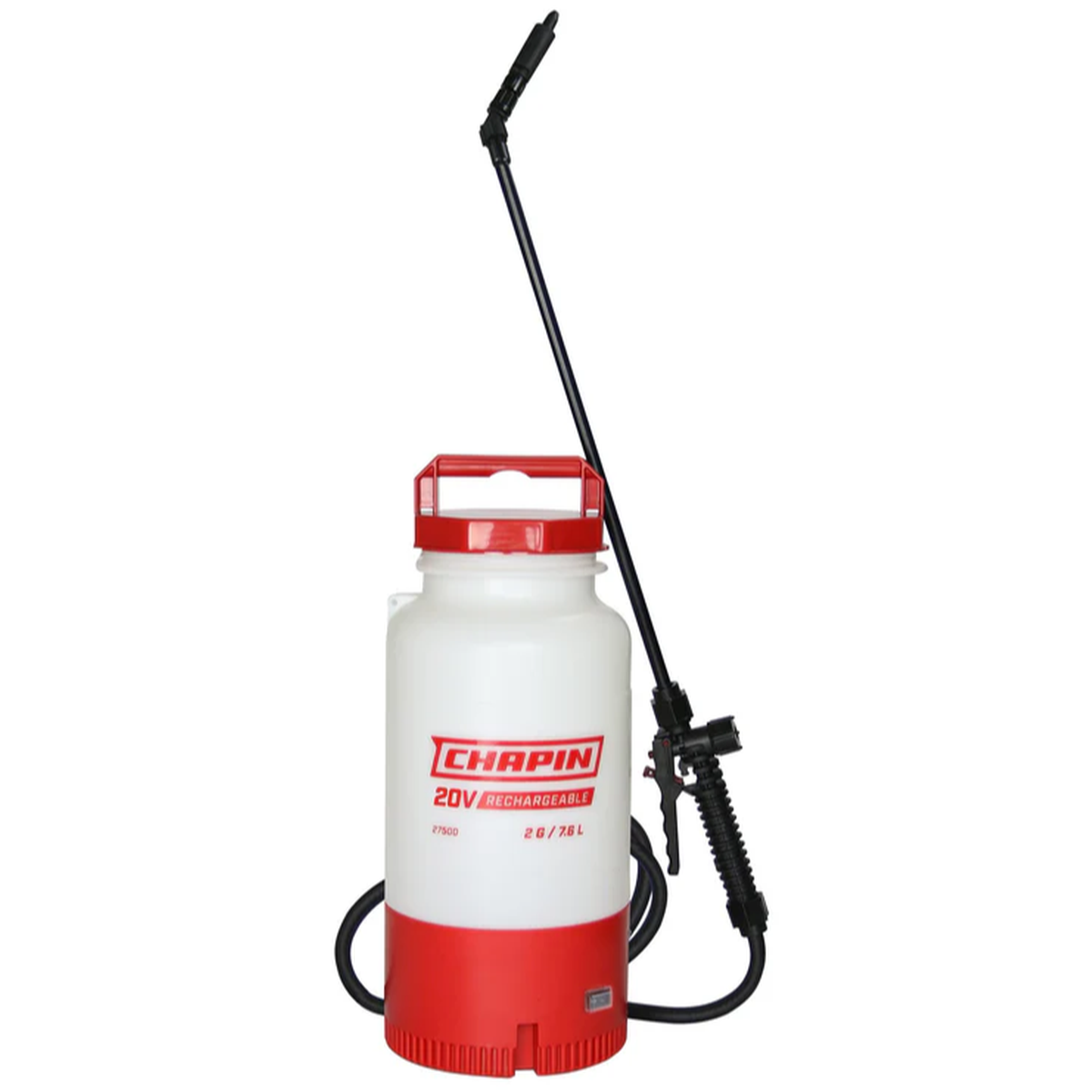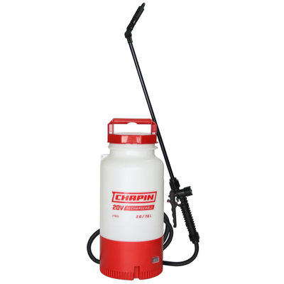 Chapin's 27504 2-gallon 20V integrated battery rechargeable multi-purpose tank sprayer gives you up to 1.75 hours of continuous spray time. The seals and gaskets work with standard household fertilizers, pesticides, insecticides, herbicides, and fungicides so whatever is on your lawn and garden list for the day, Chapin's got it covered.