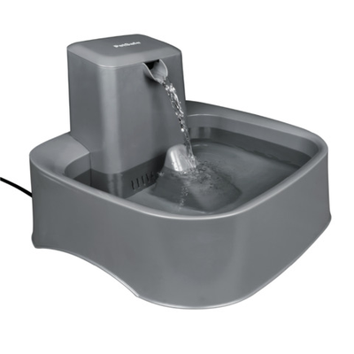This 2 gallon pet fountain features a free-falling water stream with adjustable flow control. Choose from nearly silent circulation on the lowest setting to a tranquil stream on the highest. The free-falling stream of water encourages your cat or dog to drink more which can help prevent urinary and kidney diseases. This large capacity fountain is perfect if you have multiple pets or a big dog. Our square fountain's design is large enough for several pets to drink out of at the same time with minimal splashing. The pet fountain uses a carbon and foam filter to remove bad tastes and odors from your pet's water keeping it fresh. The 2 gallon pet fountain is top-rack dishwasher safe and specifically designed to have no hard to reach places to make cleaning easy