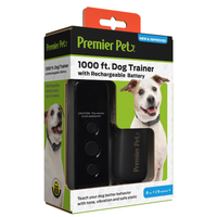 Introducing the Premier Pet 1000 Foot Trainer, a reliable solution to help you effectively correct unwanted behaviors in dogs of all sizes. This advanced training tool ensures clear communication and consistent enforcement of rules in a way that your dog can easily understand. With a user-friendly remote featuring an LCD display, you can tailor the training experience to your dog's specific needs with three safe modes: tone, vibration, and 16 levels of static stimulation. The rechargeable, waterproof collar includes an adjustable nylon strap, accommodating dogs with neck sizes up to 28". Its durable and versatile design is perfect for off-leash walks around the park or long hikes with your dog. The low battery indicator and quick 2-hour recharge ensure your training sessions are never interrupted. Expandable to train up to two dogs with the purchase of an Add-A-Dog Collar, the Premier Pet 1000 Foot Trainer is the ultimate tool for dog owners who seek reliable and long-range training solutions.