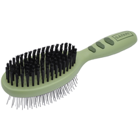 A dual purpose pin and bristle grooming brush.