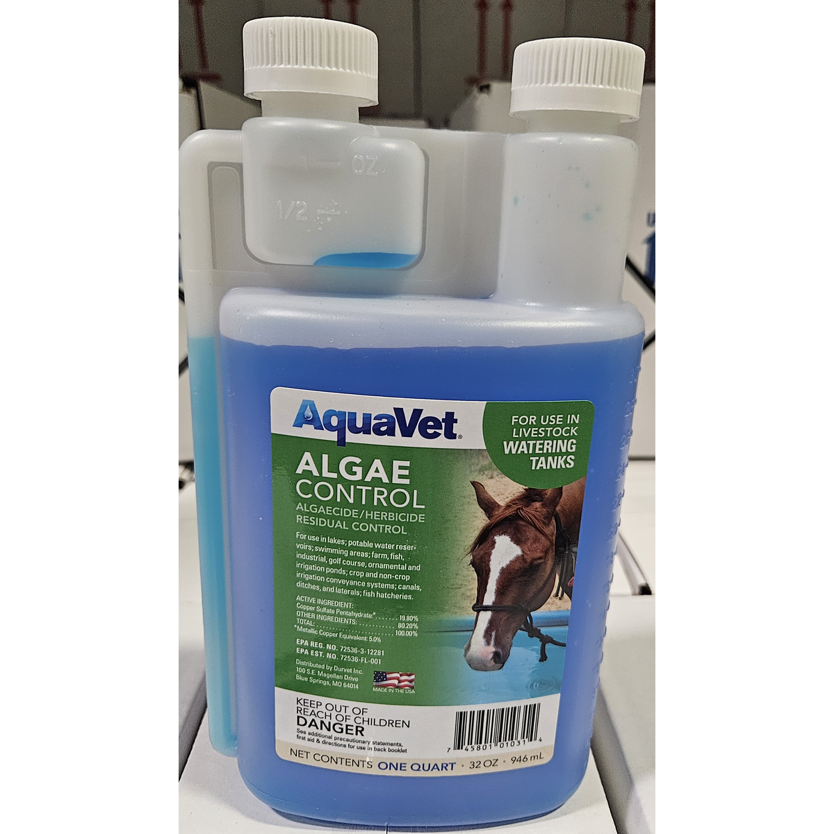 Treatment for killing floating, submerged, and planktonic algae in stock tanks.