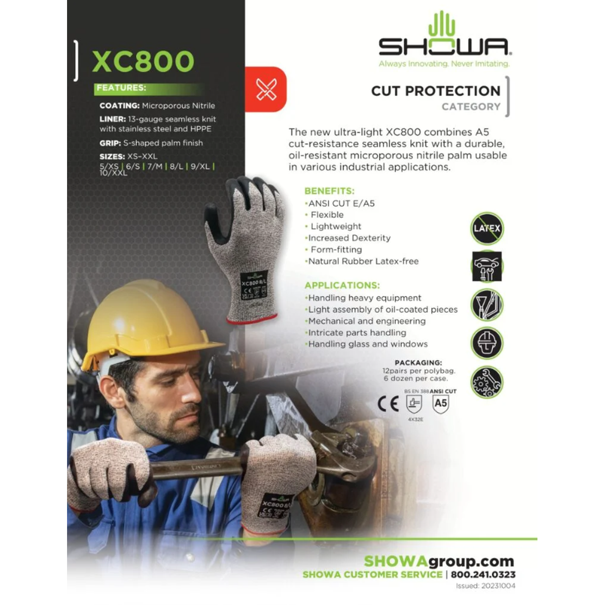 The new ultra-light SHOWA S-TEX XC800 combines A5 cut-resistance seamless knit with a durable, oil-resistant microporous nitrile palm usable in various industrial applications.