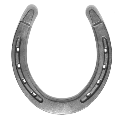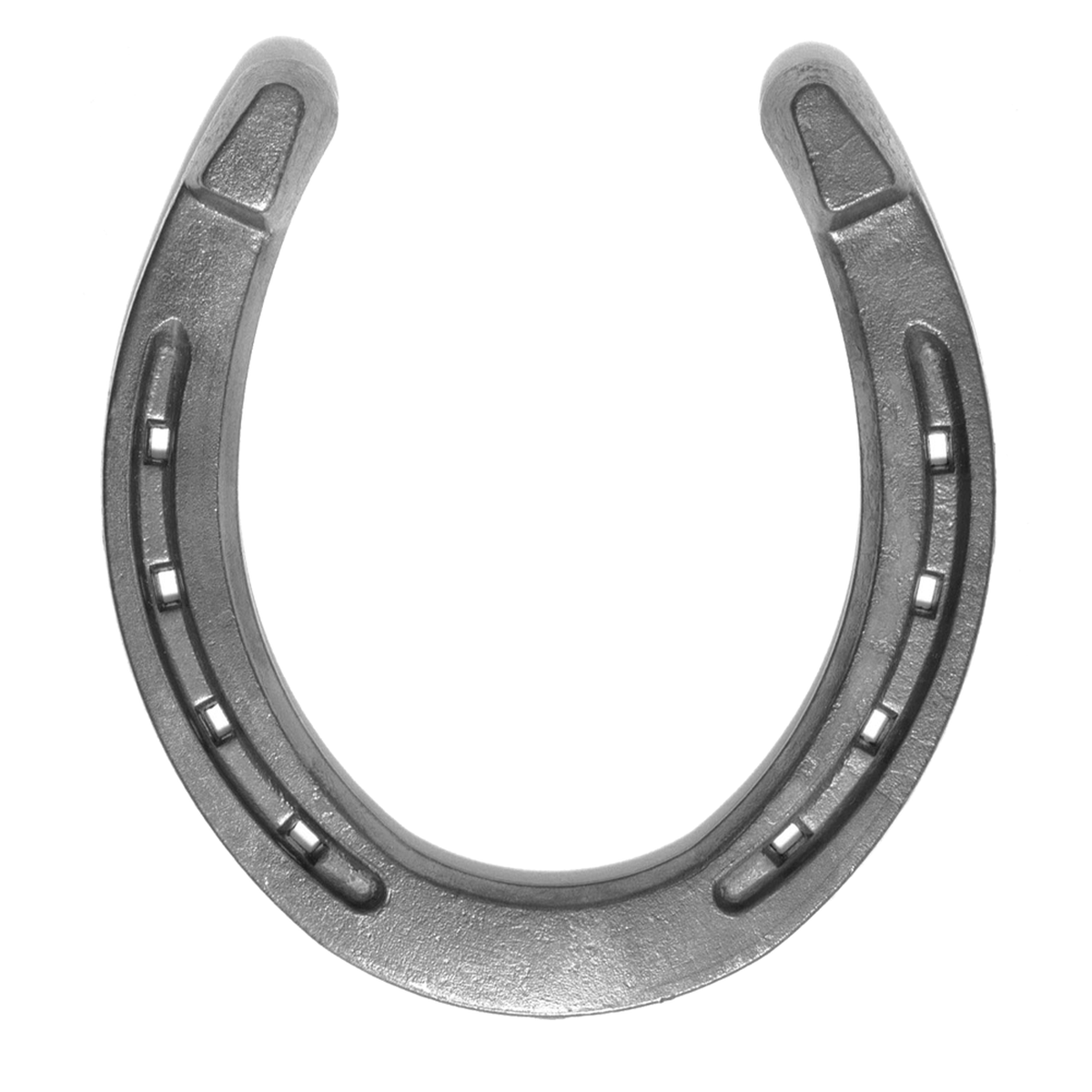 Heeled shoe offers a clean angled heel calk to help horses maintain their control and steady traction on rough ground.