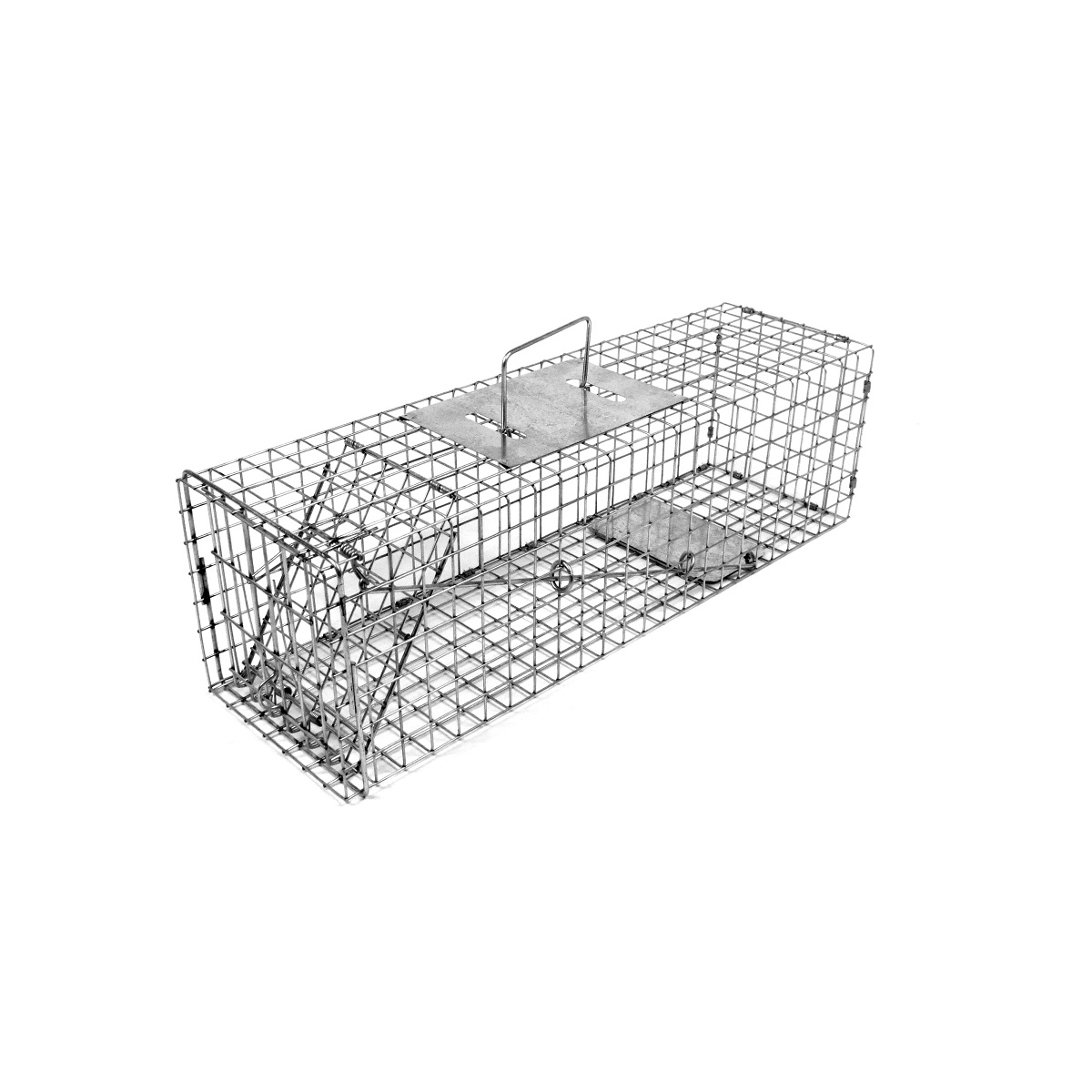 Model 105 a Original Series live trap designed for skunks, prairie dogs and similar size animals. This cage trap weighs 3 pounds and measures 24L x 7W x 7H. It is 4" longer than our standard skunk trap. These skunk traps are constructed from 1" x 1" - 14 gauge galvanized wire mesh.