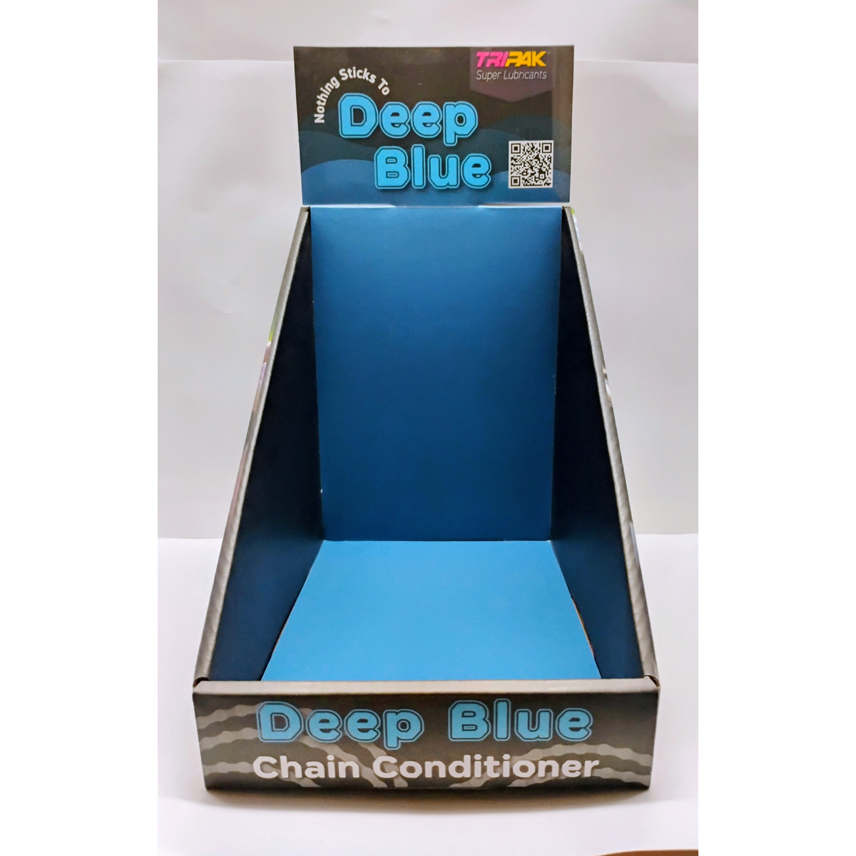 Counter top display for Deep Blue Chain Conditioner by Tripak