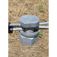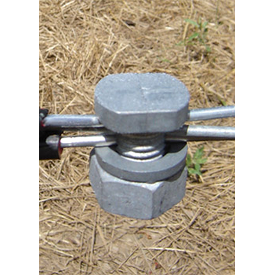 Split-bolt clamp design used to hold multiple fence wires or underground cable.