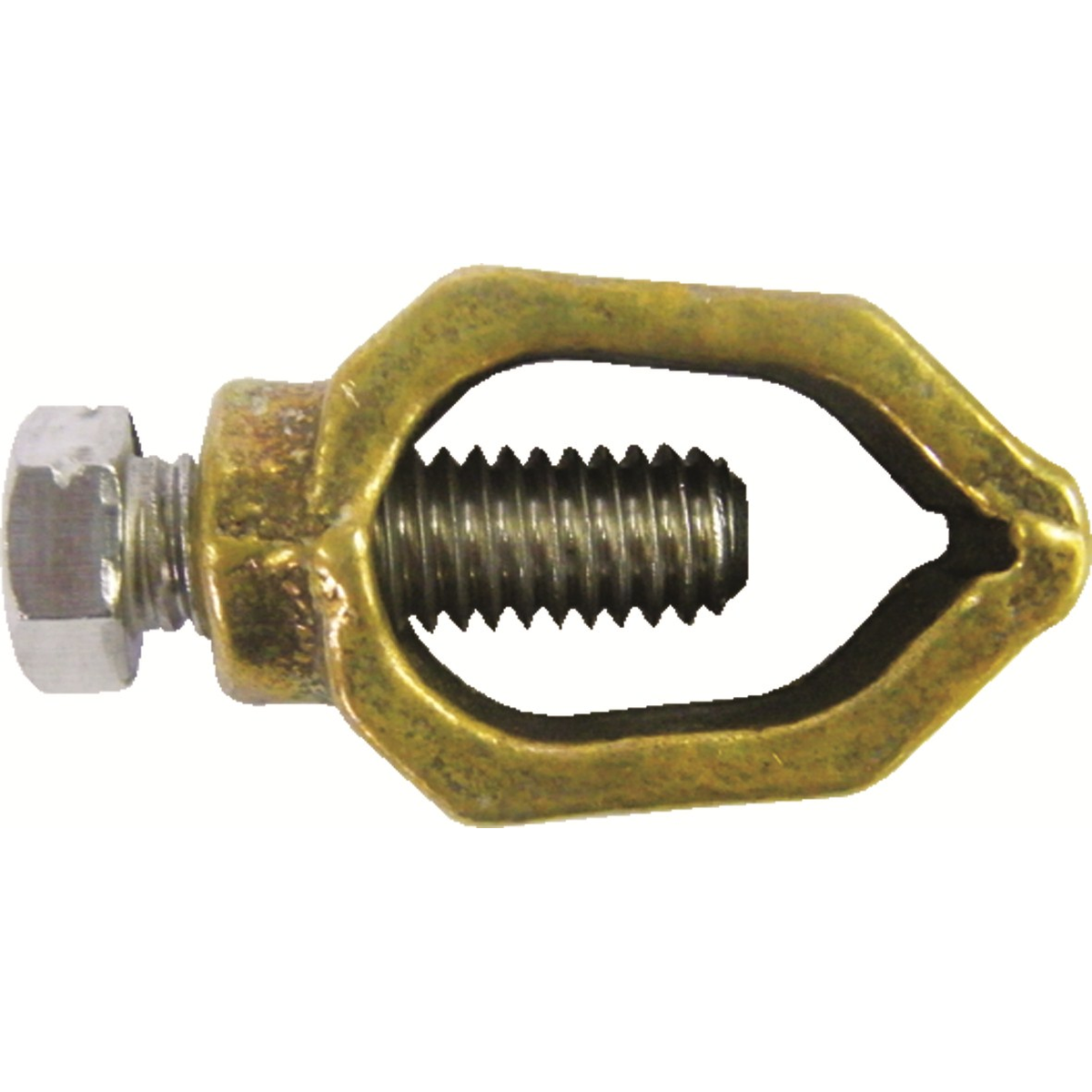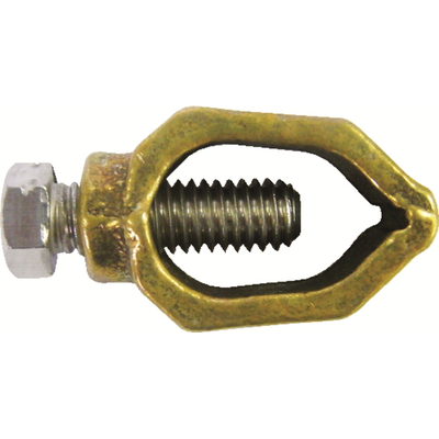 Heavy duty, brass clamp for use in securing underground cable to ground rod.