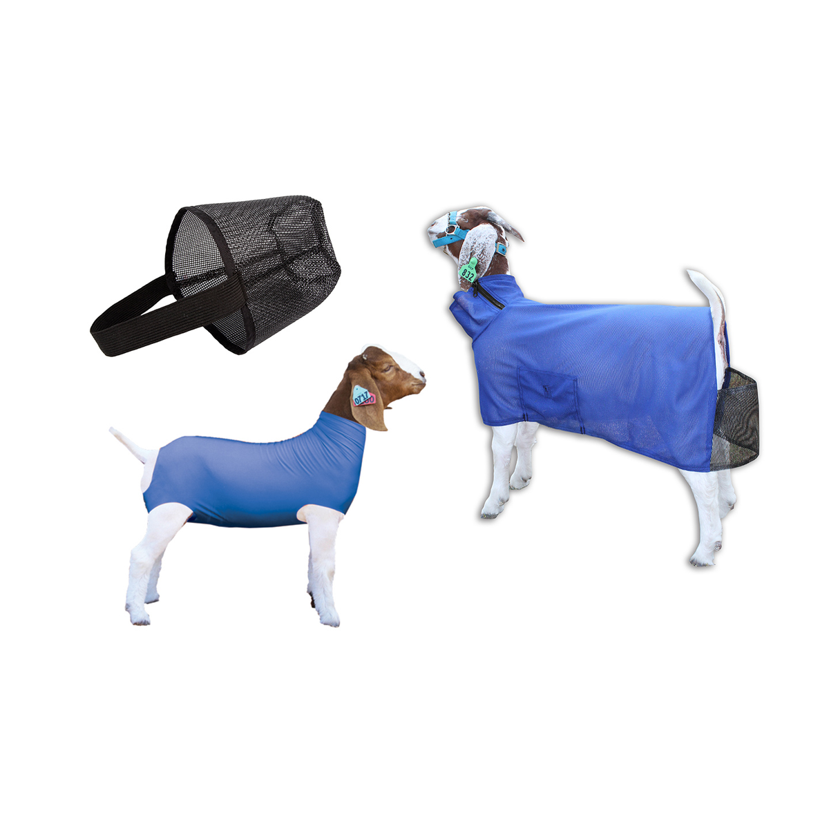 Bundle includes cool mesh blanket with mesh butt, spandex goat tube and goat muzzle