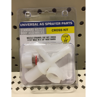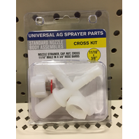 Cross Nozzle Body Kit Includes Body, Jam Nut, Screen, and Tip Cap.