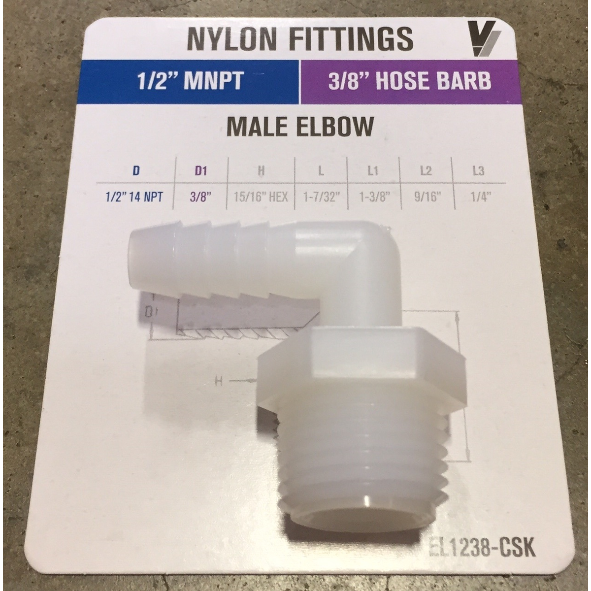 1/2" MNPT to 3/8" Barbed Hose Elbow