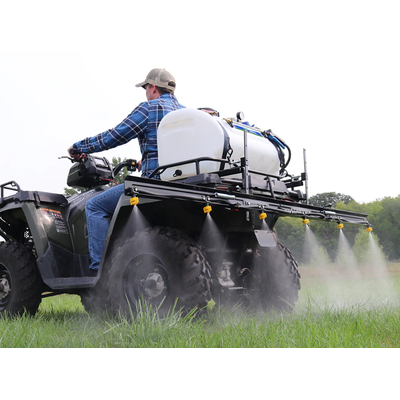 This heavy-duty, six nozzle boom is perfect for large estates or fields that require broadcast spraying more than 4 acres. Featuring 80 degree flat fan nozzles (90.080.002) that provide a medium droplet size and medium drift hazard. A minimum of 1.8 GPM pump is needed. For best performance, stay within 30-60 PSI.