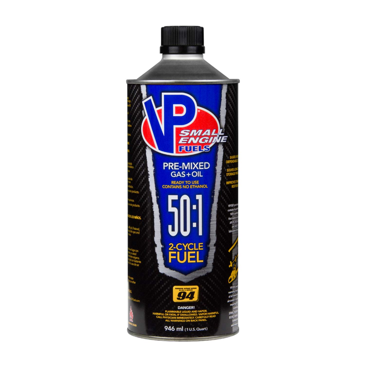 VP 50:1 mix is a 94-octane, ethanol-free small engine premix fuel designed for 2-cycle engines in outdoor power equipment.