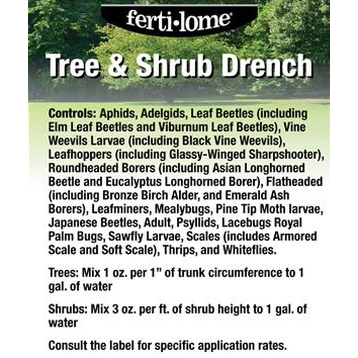 Controls Adelgids, Leaf Beetles (including Elm Leaf Beetles and Viburnum Leaf Beetles), Vine Weevils Larvae (including Black Vine Weevils), Leafhoppers (including Glassy-Winged Sharpshooter), Roundheaded Borers (including Asian Longhorned Beetle and Eucalyptus Longhorned Borer), Flatheaded (including Bronze Birch Alder, and Emerald Ash Borers), Leafminers, Mealybugs, Pine Tip Moth larvae, Japanese Beetles, Adult, Psyllids, Lacebugs Royal Palm Bugs, Sawfly Larvae, Scales (includes Armored Scale [Suppression] and Soft Scale), Thrips, and Whiteflies.