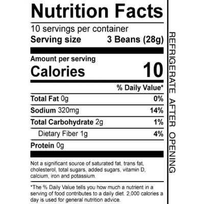 Ingredients: Green beans, water, vinegar, salt, garlic, dill weed, red pepper, natural flavors, calcium chloride.