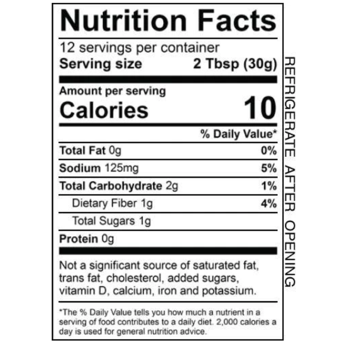 Ingredients: Tomatoes, water, tomato paste, onion, habanero pepper, jalapeno pepper, distilled vinegar, salt, garlic, black pepper. Net Wt 14 oz ( 396g)