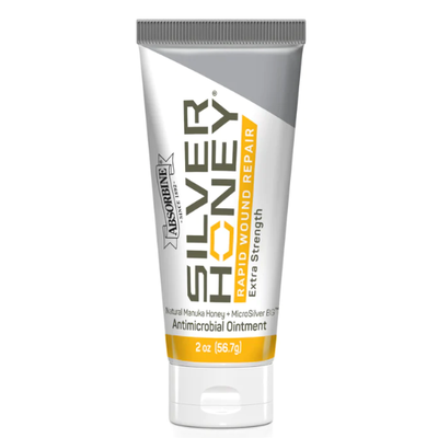 The first product to combine the natural power of Manuka Honey and MicroSilver BG, Silver Honey Rapid Wound Repair is equine wound care that's tough on bacteria but gentle on skin. Its revolutionary formula moisturizes the treatment area as it heals and is proven to stop 99.9% of bacteria immediately to start healing faster. It also protects the skin's natural microbiome, so your horses, ponies and animal companions heal quickly and comfortably. Effective on cuts, abrasions, sores, rain rot, rashes, fungus, scratches, sweet itch, wounds, skin ulcers and burns. 2oz Tube.
