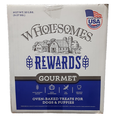 Wholesomes Rewards Variety oven-baked biscuits are proudly made in family-owned, USA kitchens. The crunchy texture helps your dog's teeth remain clean and healthy. Each dog biscuit treat is made with high quality chicken protein, ancient grains like oatmeal for heart health, and superfoods like pumpkin and sweet potato to help support a fit lifestyle for your dog. Use these pea-free crunchy treats as a reward or training aid